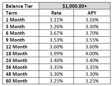 | 기간 | 이자율/연수익율 $1,000 - $249,999.99 |